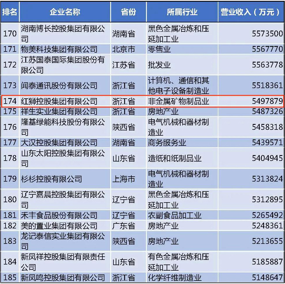 喜報頻傳!紅獅集團再次入圍中國民營企業(yè)500強