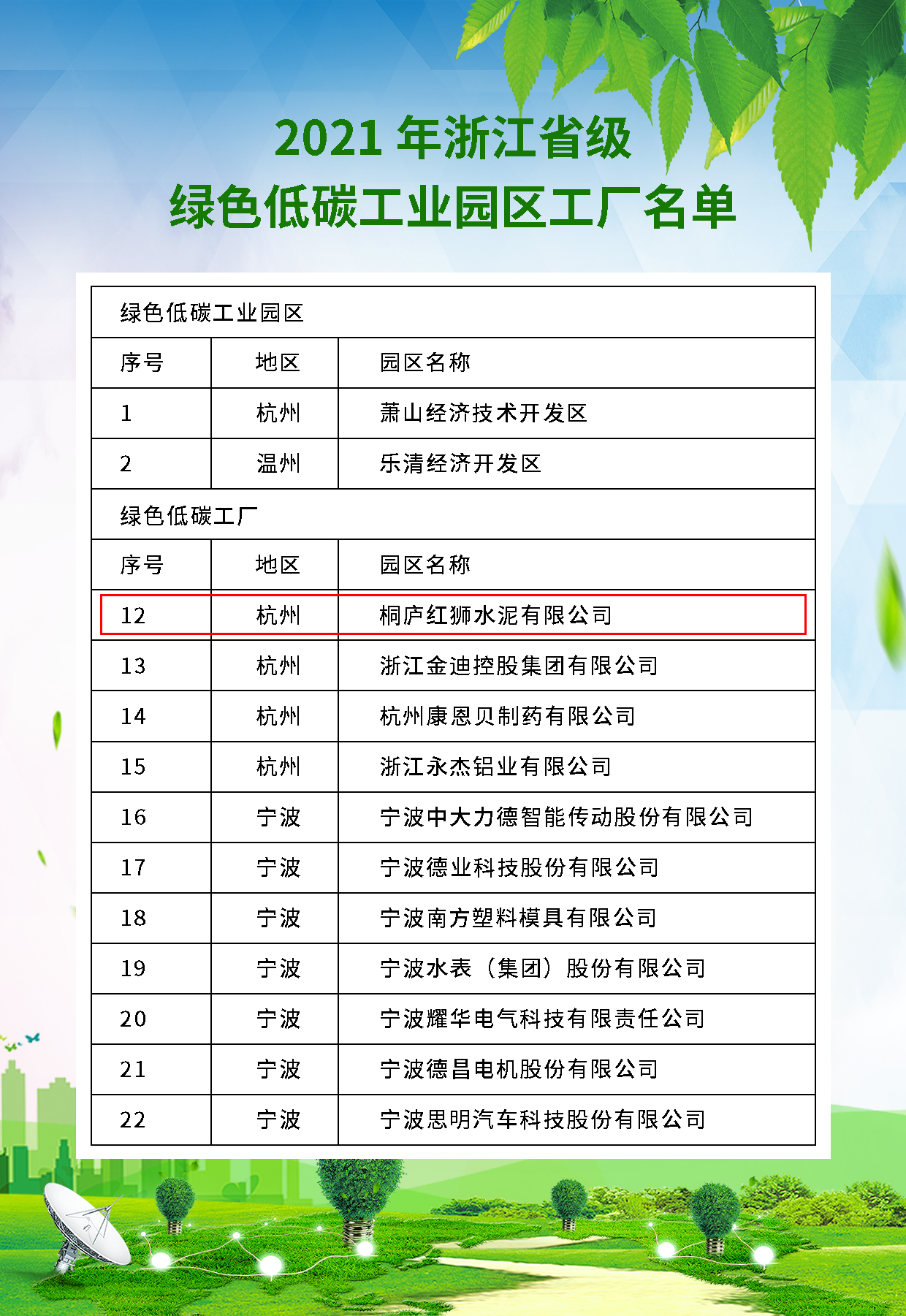 喜訊!桐廬紅獅獲評2021年浙江省級綠色低碳工廠