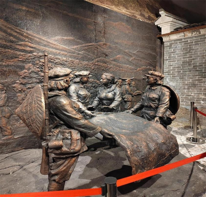 活動(dòng)當(dāng)天,大家心懷敬意地踏上了此次學(xué)習(xí)之旅。走進(jìn)大門,映入眼簾的就是廣場(chǎng)中間半條被子雕塑,時(shí)隔八十多年,趟過歷史長河,三位女紅軍與村民徐解秀仍在推讓那唯一的棉被,廣場(chǎng)上冰冷的雕塑在太陽底下散發(fā)著溫暖的氣息,那是人心的溫暖。