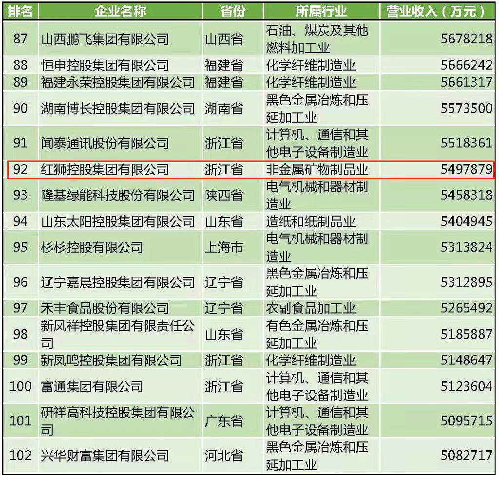 喜報頻傳!紅獅集團再次入圍中國民營企業(yè)500強