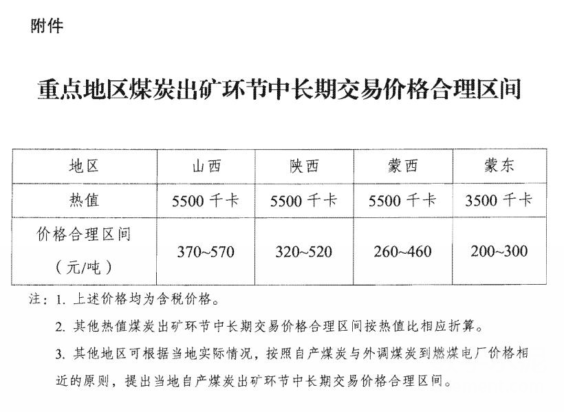 ??從多年市場運行情況看,近期階段秦皇島港下水煤(5500千卡)中長期交易價格每噸570~770元(含稅)較為合理(晉陜蒙相應煤炭出礦環(huán)節(jié)中長期交易價格合理區(qū)間見附件),煤炭生產、流通、消費能夠保持基本平穩(wěn),煤、電上下游產業(yè)能夠實現較好協(xié)同發(fā)展。適時對合理區(qū)間進行評估完善。