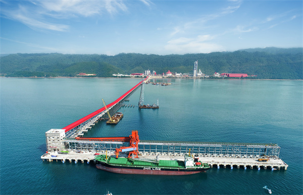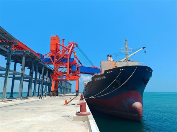 10月28日上午11時(shí)18分,印尼東加紅獅碼頭機(jī)器轟鳴,隨著裝船機(jī)伸縮罩緩緩落下,熟料順利入倉(cāng)裝船,標(biāo)志著東加紅獅海港碼頭正式投入運(yùn)營(yíng),踏上海運(yùn)銷售新征程。