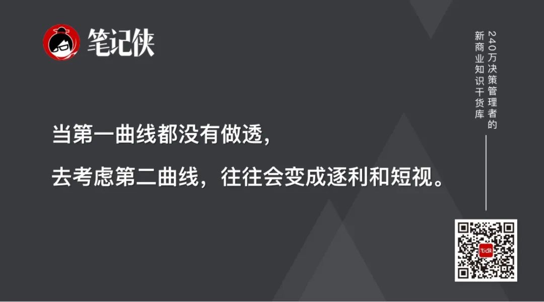 所以,當(dāng)?shù)谝磺€都沒有做透,去考慮第二曲線,往往會(huì)變成逐利和短視。