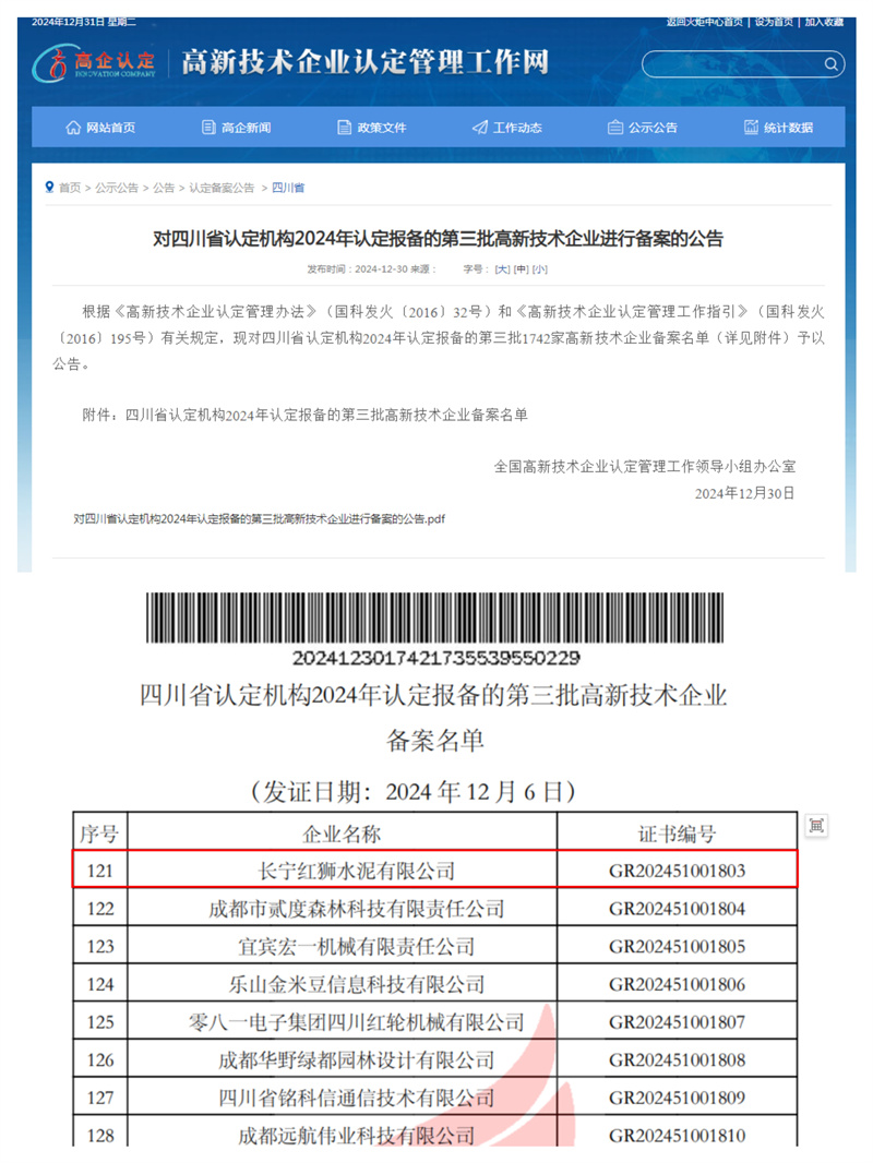 近年來,長寧紅獅始終專注于技術(shù)創(chuàng)新和研發(fā)投入,從資源環(huán)境保護(hù)等多方面自主創(chuàng)新。獲得實(shí)用新型專利授權(quán)27項(xiàng)、發(fā)明專利授權(quán)1項(xiàng),獲評國家級“高新技術(shù)企業(yè)”。高新技術(shù)企業(yè)認(rèn)定是對公司在科技領(lǐng)域創(chuàng)新能力的肯定,也是對公司技術(shù)研發(fā)實(shí)力、科技成果轉(zhuǎn)化能力及核心自主知識產(chǎn)權(quán)的認(rèn)可。這一認(rèn)定既提升了公司的市場競爭力,還可享受三年5%進(jìn)項(xiàng)增值稅加計(jì)抵扣,為公司持續(xù)發(fā)展提供了政策支持。