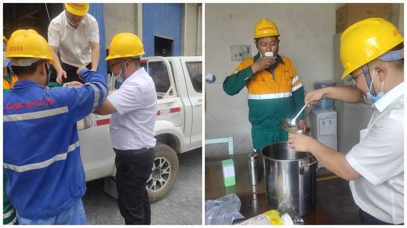 為做好高溫期間防暑降溫工作,積極為生產(chǎn)一線服務(wù),新疆金龍水泥有限公司決定自7月1日起由綜合科組織牽頭,各管理線部門配合,積極開展“為高溫崗位員工送清涼”活動。7月2日下午,管理線部門志愿者頂著35度的高溫,將“員工餐廳”提前精心準(zhǔn)備好的綠豆湯,送至提前規(guī)劃好的點位,燒成辦公室、制成辦公室、安??崎T口等重點崗位,為那些堅守在第一線的員工們送上一片清涼,看著現(xiàn)場一線員工曬得通紅的臉龐,志愿者趕緊給他們送上了一杯綠豆湯,員工們臉上露出了開心的笑容,一邊喝著綠豆湯,一邊紛紛表示,一定會克服酷暑高溫,堅守崗位,努力完成公司交辦的工作任務(wù)。